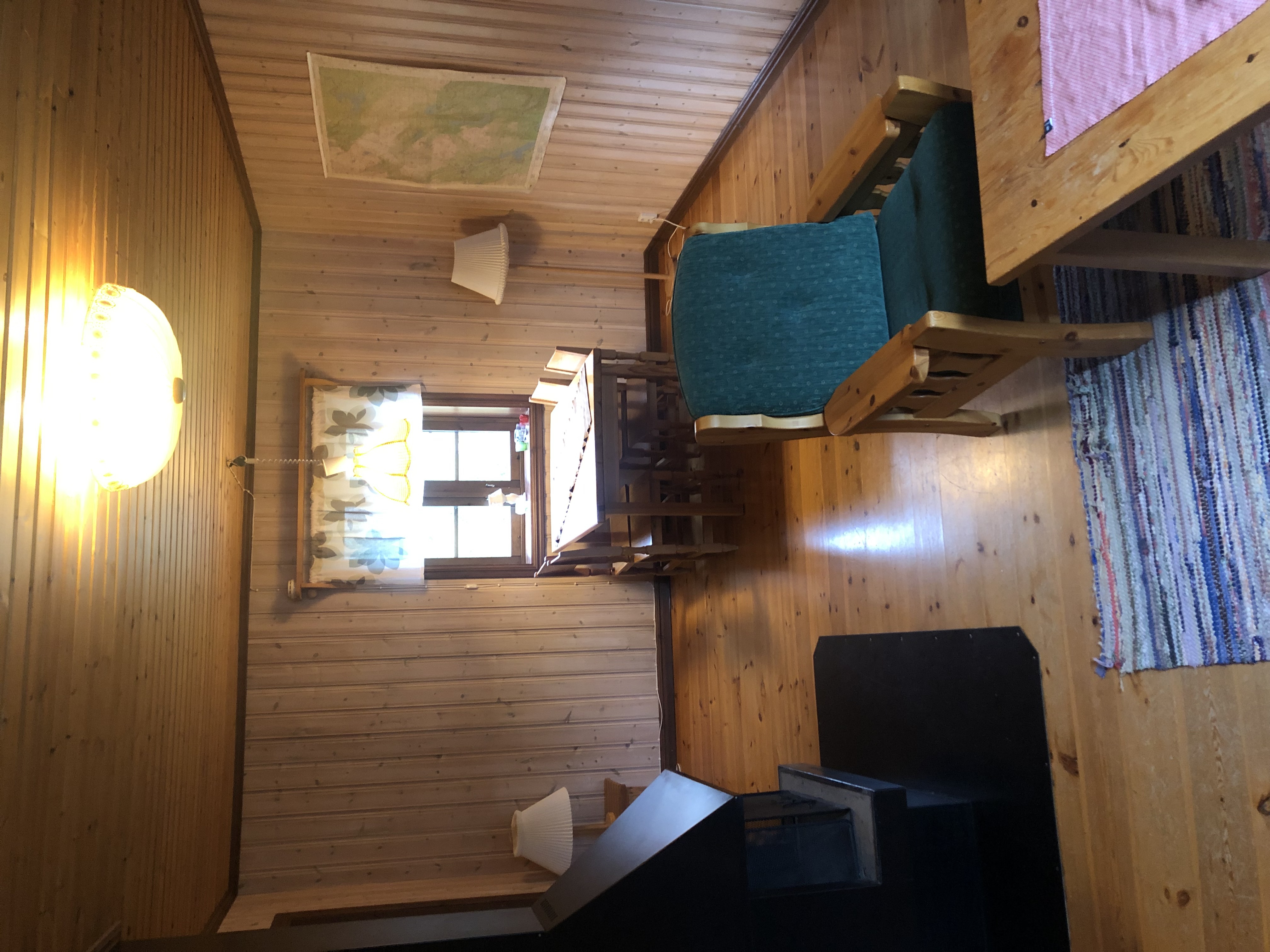 4 bäddsstuga med två sovrum som båda har våningssäng. Storstuga med kök, matplats, vardagsrum med öppen spis.Toalett med dusch.Torkskåp.Tv.Wifi.Hund är tillåten.